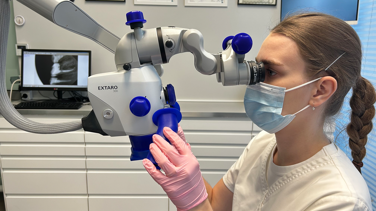 ✔️ mažesnė komplikacijų rizika: dėl aukšto mikroskopo tikslumo, mes galime labai švelniai elgtis su dantimis, išsaugodami kuo daugiau sveikos audinio;